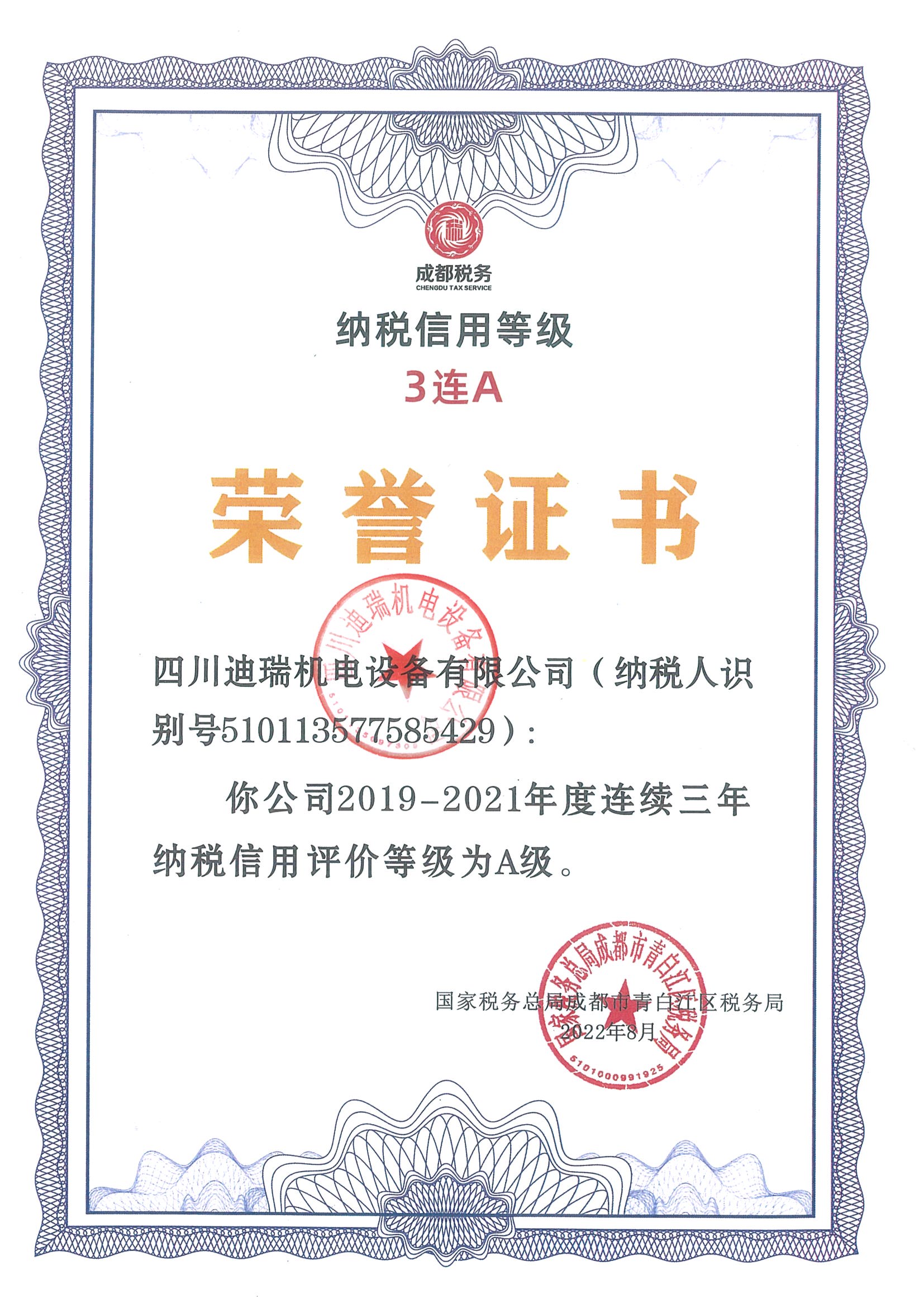 納稅3A等級(jí)證書